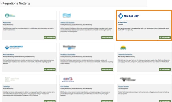 Etape 3. Dans la galerie des intégrations, trouvez Alta BLUE LINK et cliquez sur le bouton pour voir les exigences. |