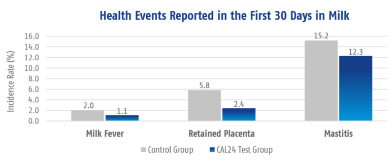 Les laiteries progressistes qui n'ont pas un taux élevé de ces problèmes de santé peuvent penser qu'elles n'ont pas grand-chose à gagner en administrant CAL24 à toutes les vaches à partir de ladeuxième lactation. Cependant, les résultats de cette étude indiquent le contraire. Quelles que soient les performances sanitaires actuelles d'une exploitation laitière, CAL24 offre des possibilités d'amélioration.